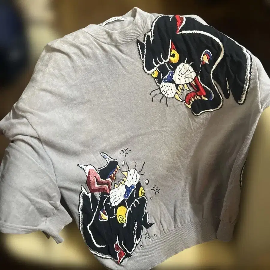 레어 FLAGSTUFF 블랙 타이거 자수 그레이 니트 스웨터 완판템
