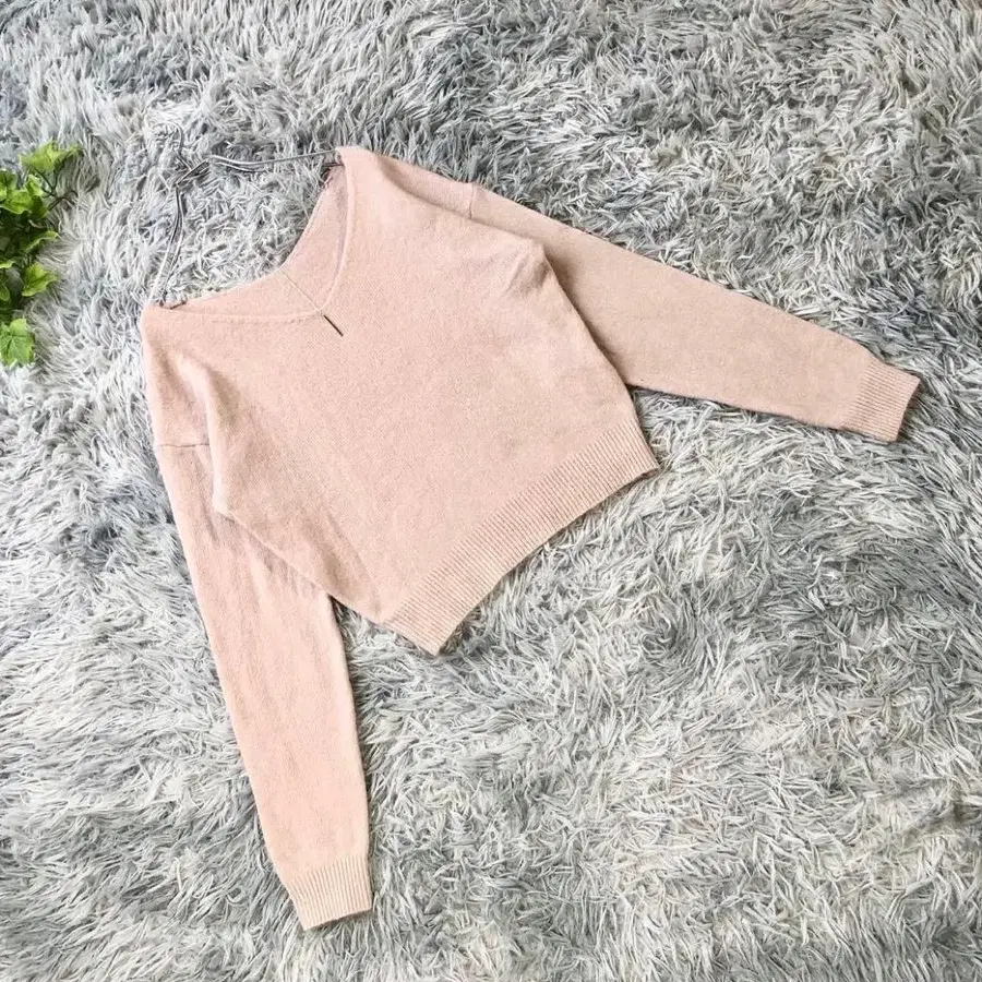 MERCURY DUO [ M ] 옅은 핑크 목걸이 포함 V넥 크롭 니트