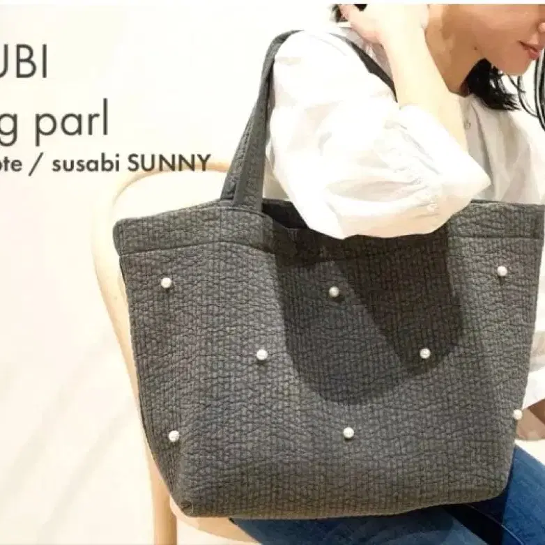 미사용 새상품 누비백 펄 빅 토트 차콜