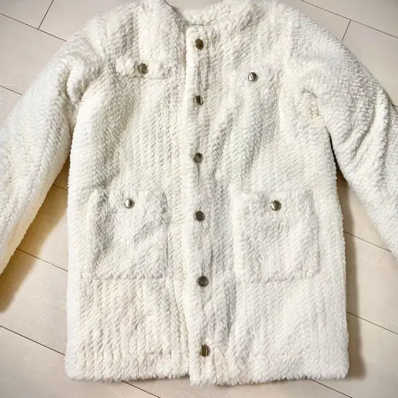 화이트 보아 자켓 퀼팅 안감 부착 푸들 코트