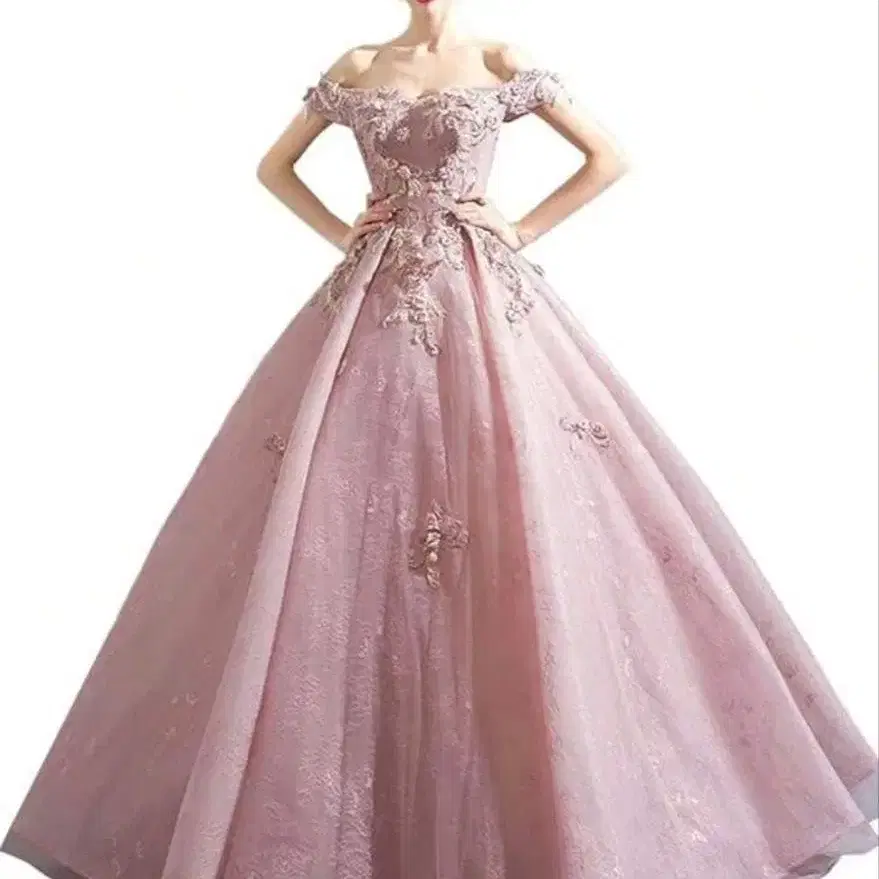 핑크 오프숄더 자수 드레스