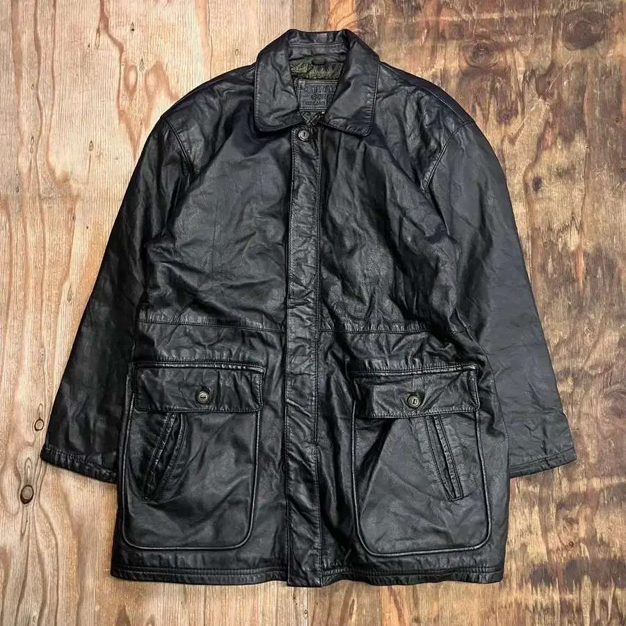 • 최상급 90s 빈티지 구제 의류 가죽 카 코트 소가죽 천연 가죽 L 블랙