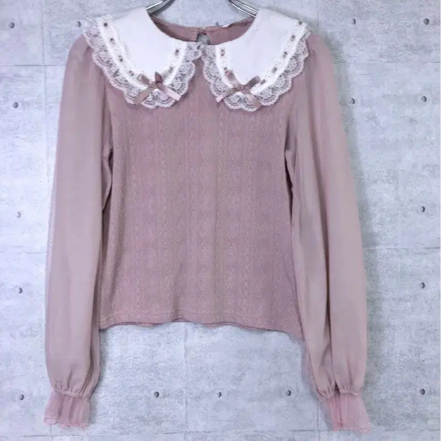 양산 걸리시 구제 의류 새틴 리본 레이스 트리밍 빅 칼라 긴팔 상의