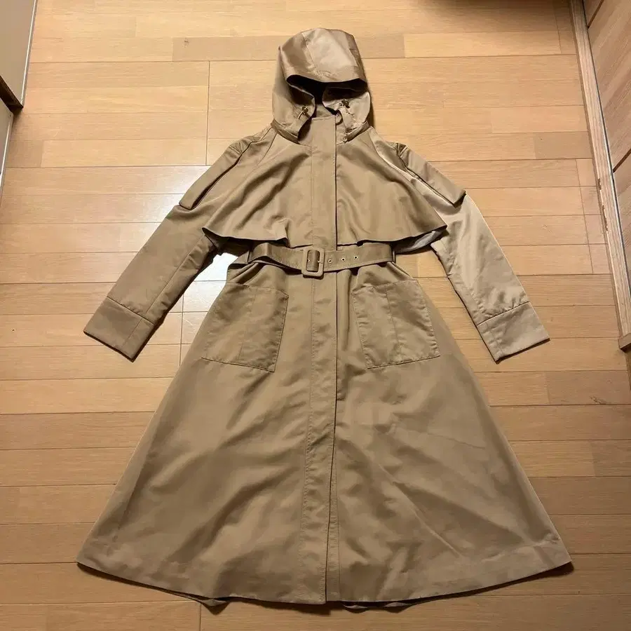 ruirue boutique 베이지 후드 부착 롱 트렌치코트
