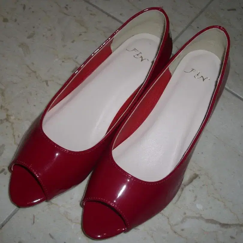 Fin 핀 에나멜 오픈토 펌프스 빨간색 샌들