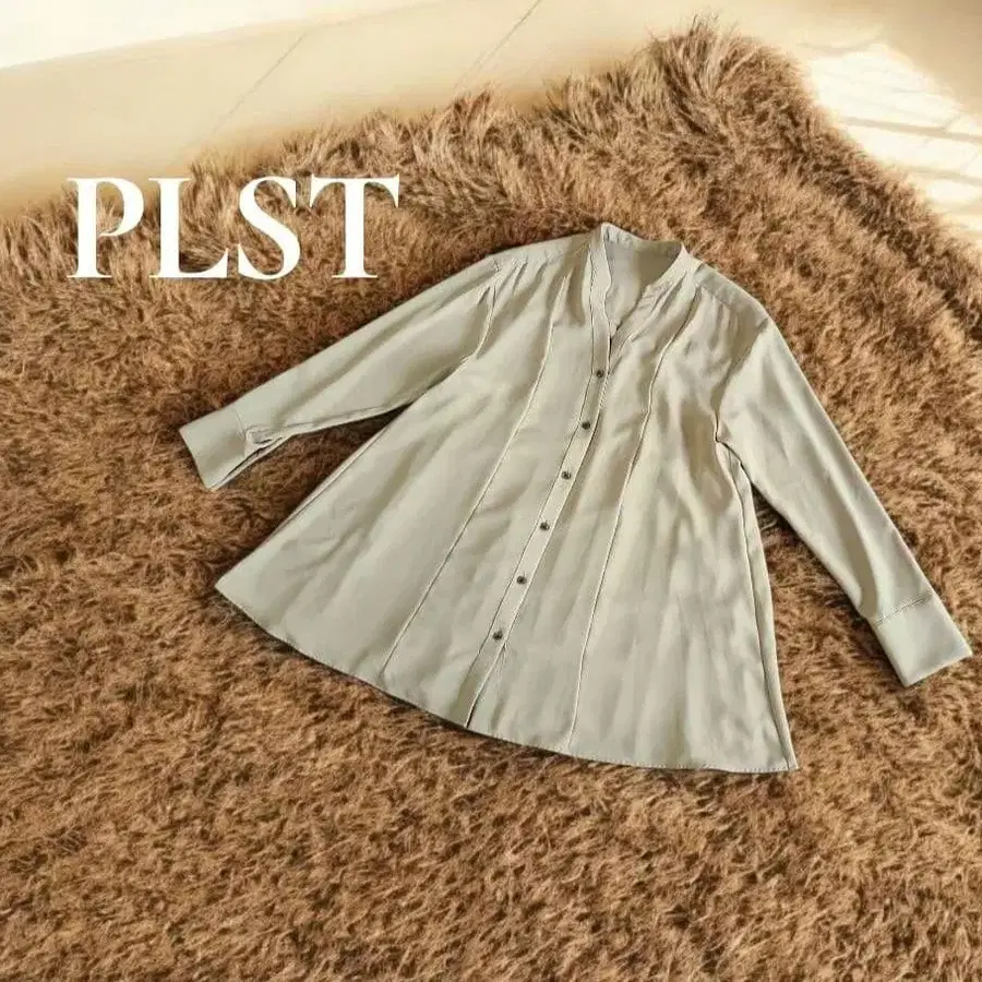 플라스테 오버 사이즈 조젯 백 플리츠 블라우스 카키