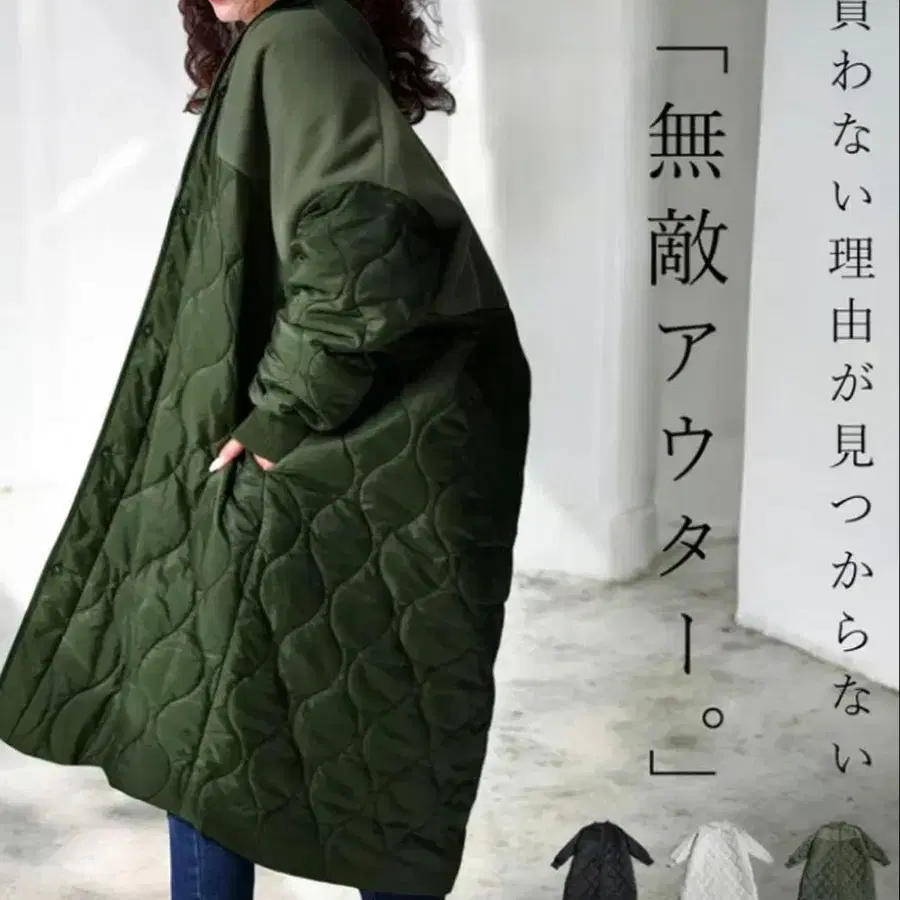 안티카 퀼팅 자켓 롱 롱 코트 퀼팅 카키