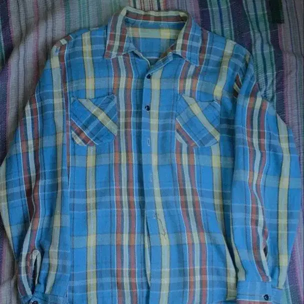 80 90s 빈티지 플란넬 셔츠 체크 발색 양호 페인트 가공