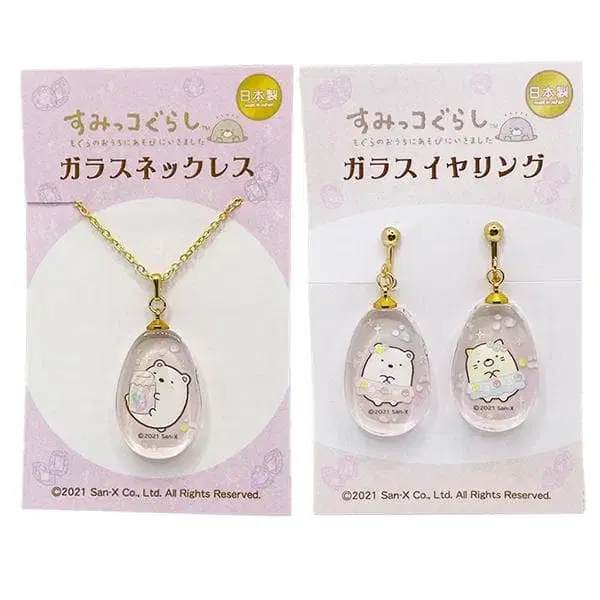 스미코구라시 유리 목걸이 귀찌 세트 핑크 시로쿠마 고양이