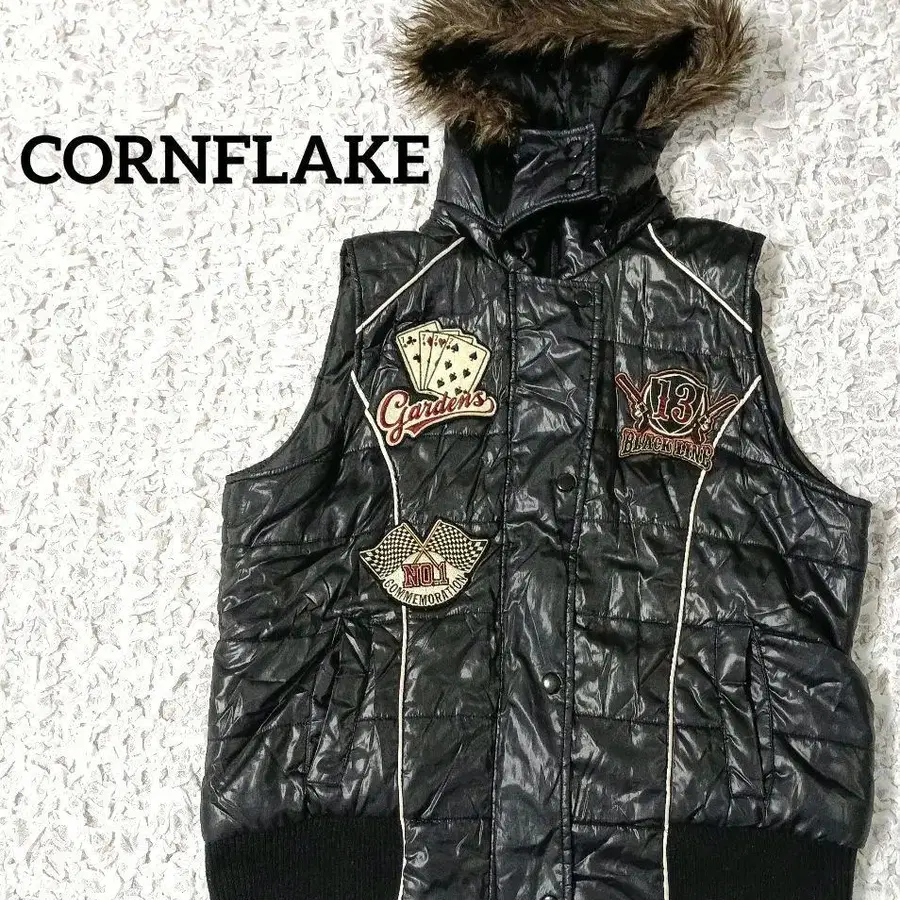 CORNFLAKE y2k 헤이세이 퍼 와펜 베스트
