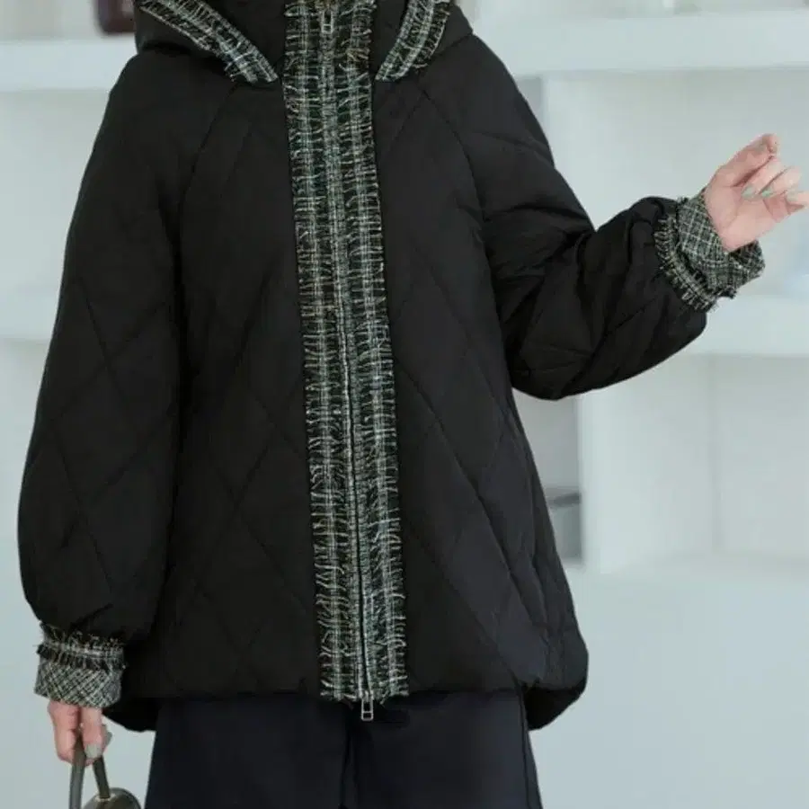 루일 에 부티크 라이트 서모 트위드 콤비 후디 퀼팅 코트
