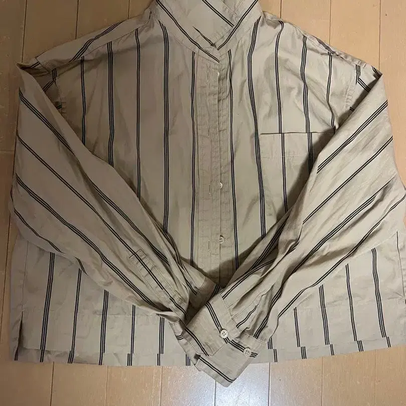 [ 브랜드 ] ebure ( 에부르 ) 사이즈 36 [ 상품 설명 ] ebure의 스트라이프 셔츠입니다. 고급스러운 베이지 컬러에 가는 스트라이프로, 어른스럽고 깔끔하게 또는 캐주얼하게 입으실 수 있습니다. 넉넉한 실루엣으로, 단품으로 또는 겉옷으로도 활약하는 아이템입니다. [ 색상 ] 베이지 계열 x 네이비 스트라이프 [ 상태 ] 눈에 띄는 얼룩이나 데미지는 없지만, 자택 보관 홈 클리닝 완료된 중고품입니다. 약간의 사용감, 접힘 주름 등은 양해 부탁드립니다. 베이지 스트라이프 하이넥 긴팔 셔츠, 캐주얼한 오버 사이즈 디자인. - 브랜드: ebure - 색상: 베이지 스트라이프 - 디자인: 긴팔 하이넥 버튼 부착 - 스타일: 캐주얼 오버 사이즈 - 포켓: 프론트 포켓 부착 [ 주의 사항 ] 자택 보관, 홈 클리닝에 이해하시는 분만 구매 부탁드립니다. 반품, 컴플레인은 받지 않습니다. 중고품에 이해가 있는 분만 부탁드립니다. 정가 53900 세금 포함