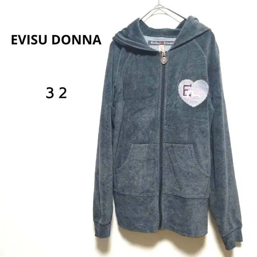 에비수돈나 32 그레이 벨로아풍 후드티 자수 면 혼방