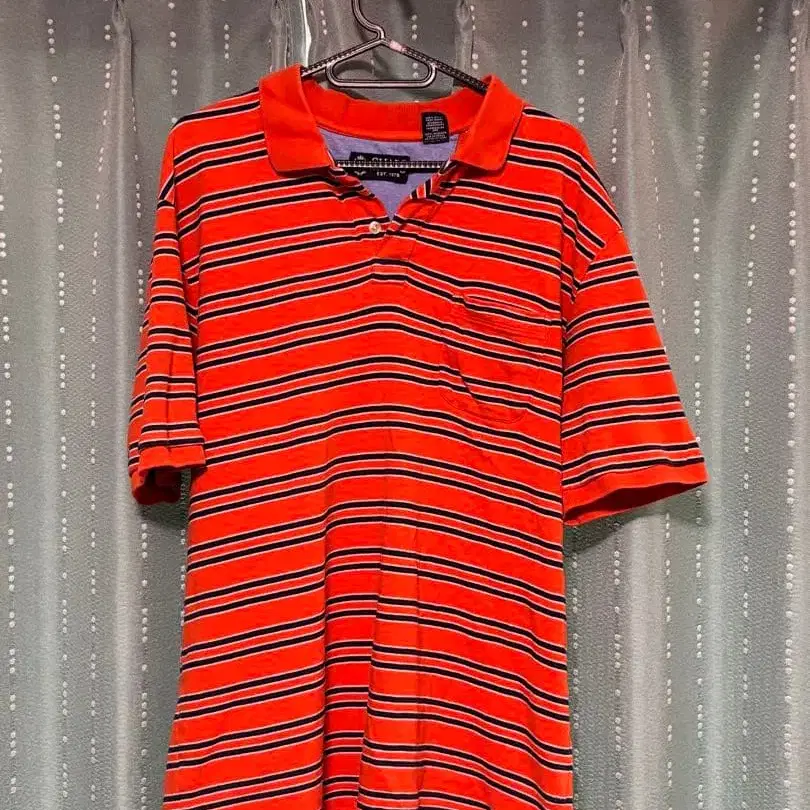 CHAPS 오렌지 스트라이프 반팔 피케 셔츠