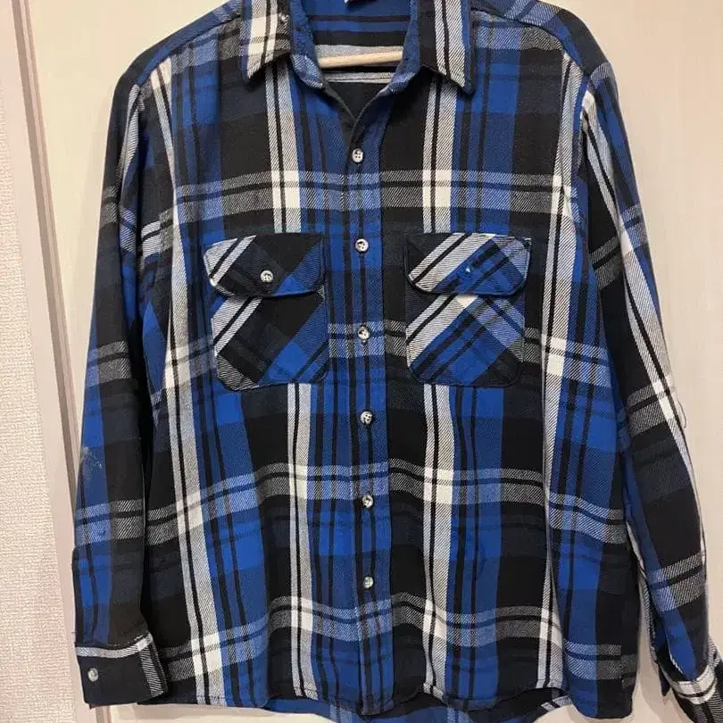 파이브 브라더 플란넬 셔츠 파랑 블랙 체크 L 사이즈