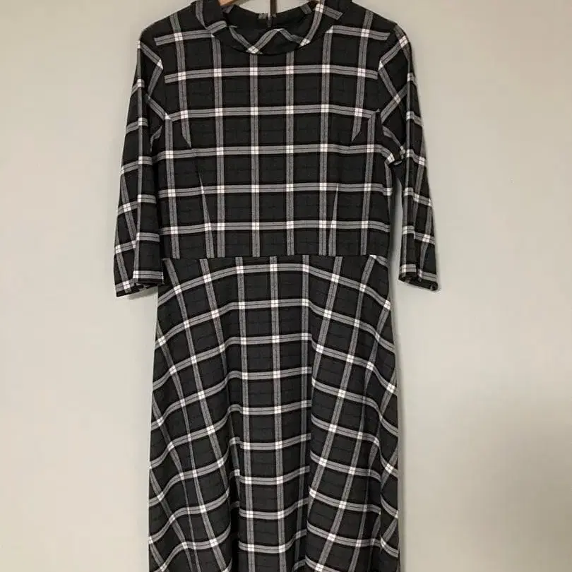 HARMONICA 체크 무늬 7부 소매 A라인 원피스