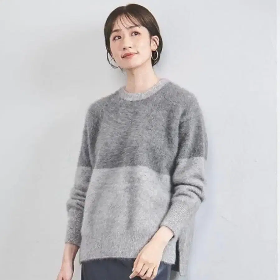 새상품급 UNITED ARROWS 폭스 캐시미어 크루넥 니트 그레이
