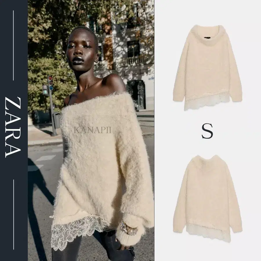 ZARA 레이스 콤비 니트 스웨터 S 에크루 새상품
