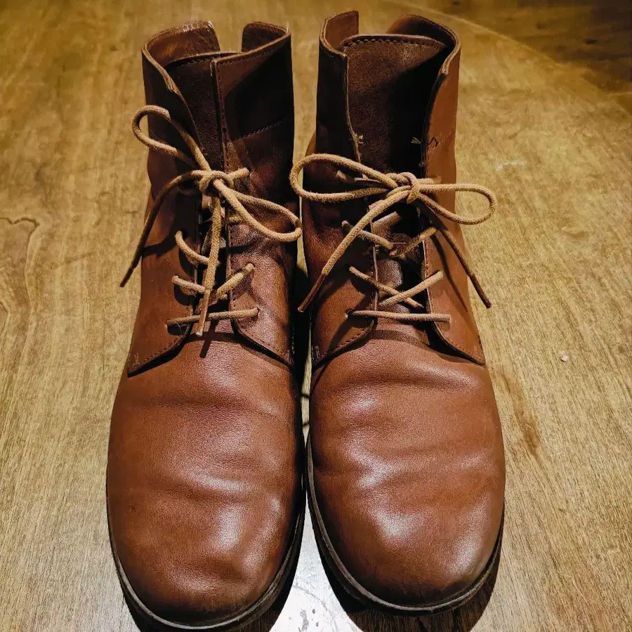 브라운 가죽 레이스업 부츠 24cm