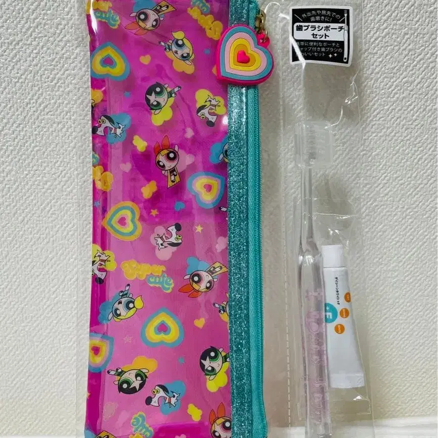미사용 새상품 PLAZA 한정판 파워퍼프걸스 칫솔 파우치 칫솔 세트