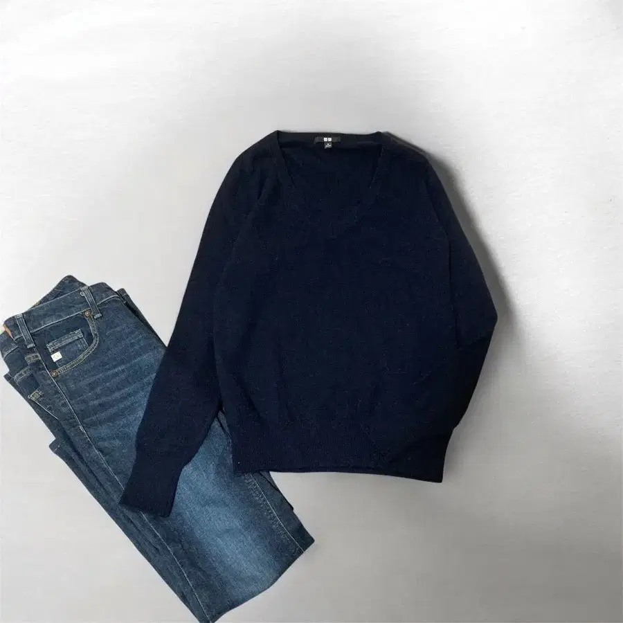 • 유니클로 캐시미어 100% V넥 니트 네이비 L