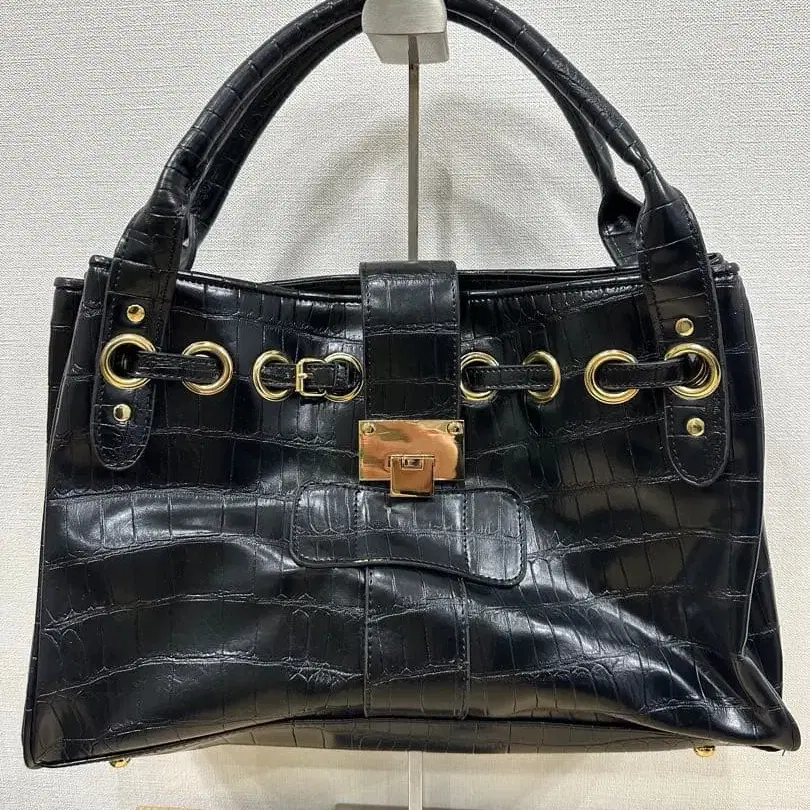 블랙 크로커다일풍 핸드백 골드 금장 장식