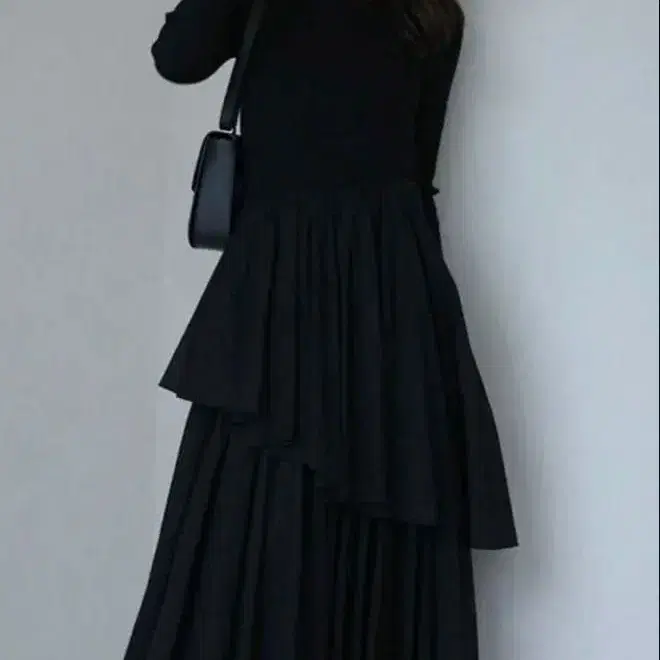 anuans 보트넥 불규칙 밑단 도킹 니트 원피스