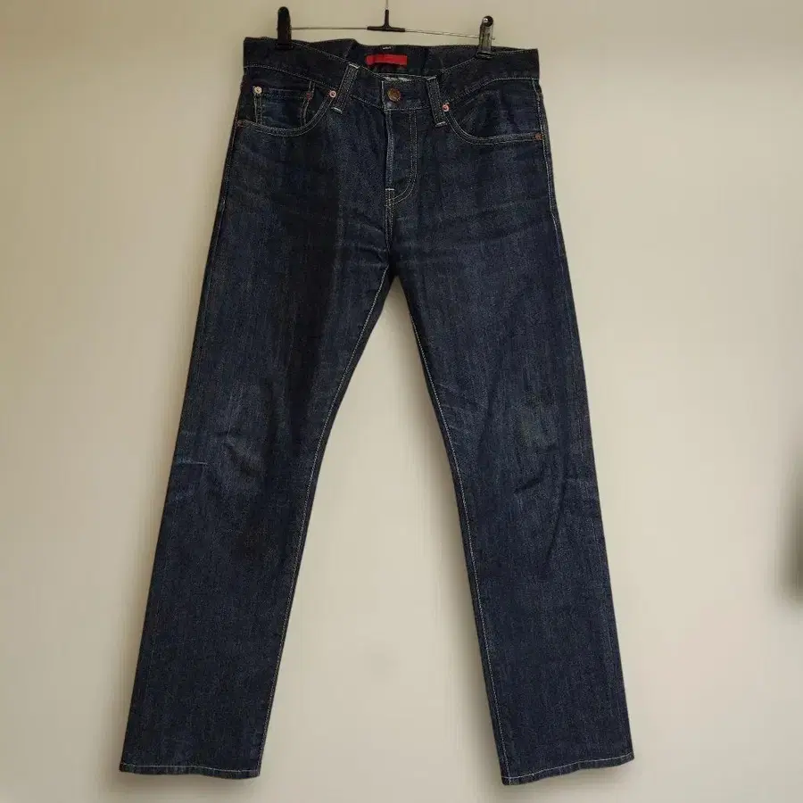 레드카드 버튼 플라이 다크 네이비 데님 청바지 슬림 스트레이트 L 상당
