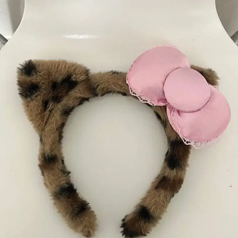 레오파드 무늬 머리띠 키티 핑크 리본
