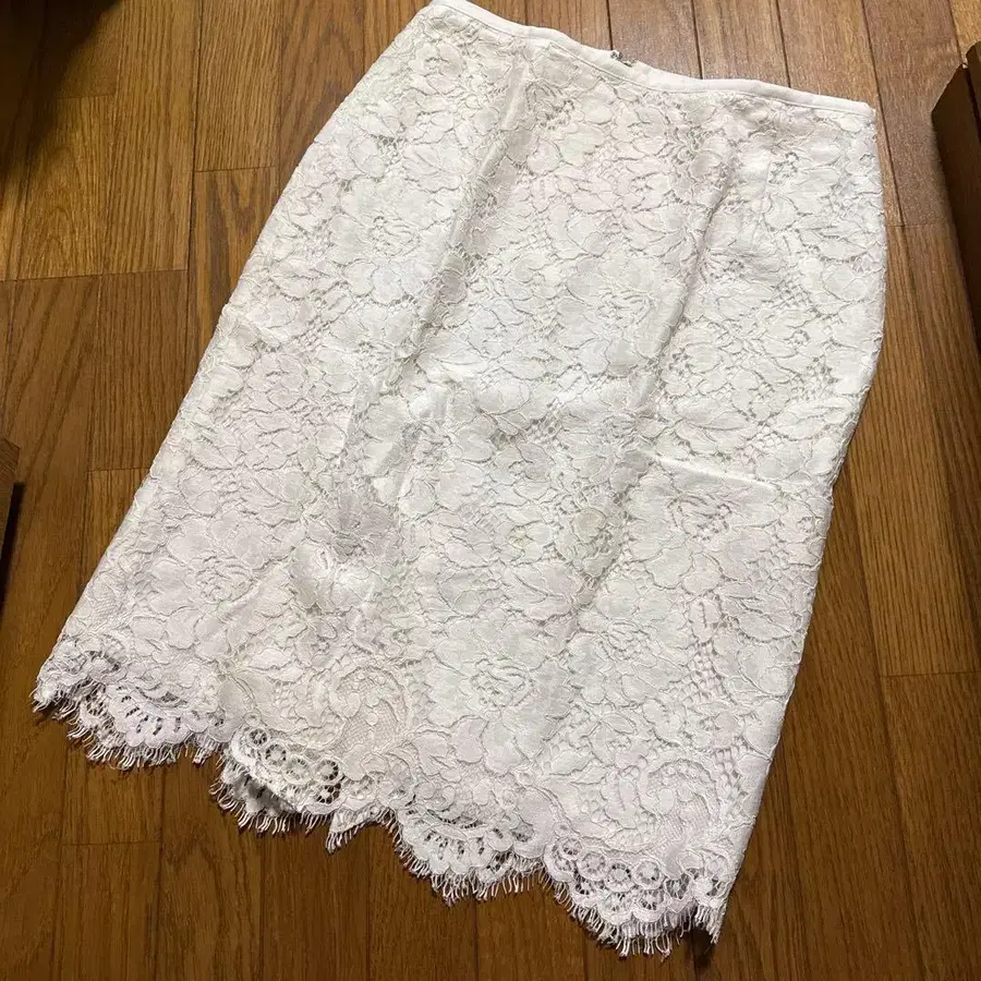 에스트네이션 화이트 전체 레이스 타이트 스커트 38
