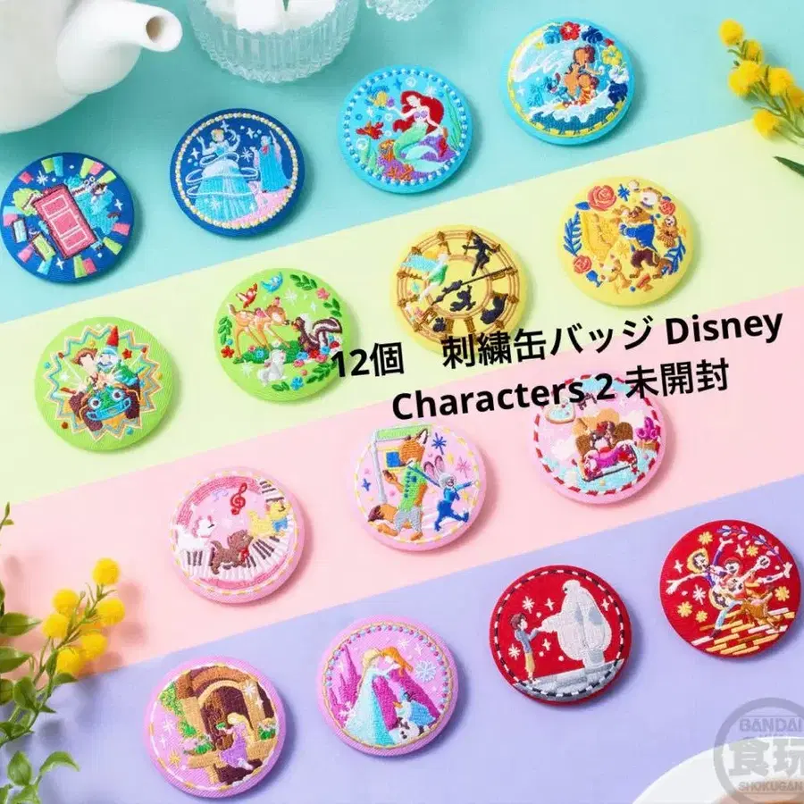 12개 자수 캔뱃지 Disney Characters 비스킷2 미개봉