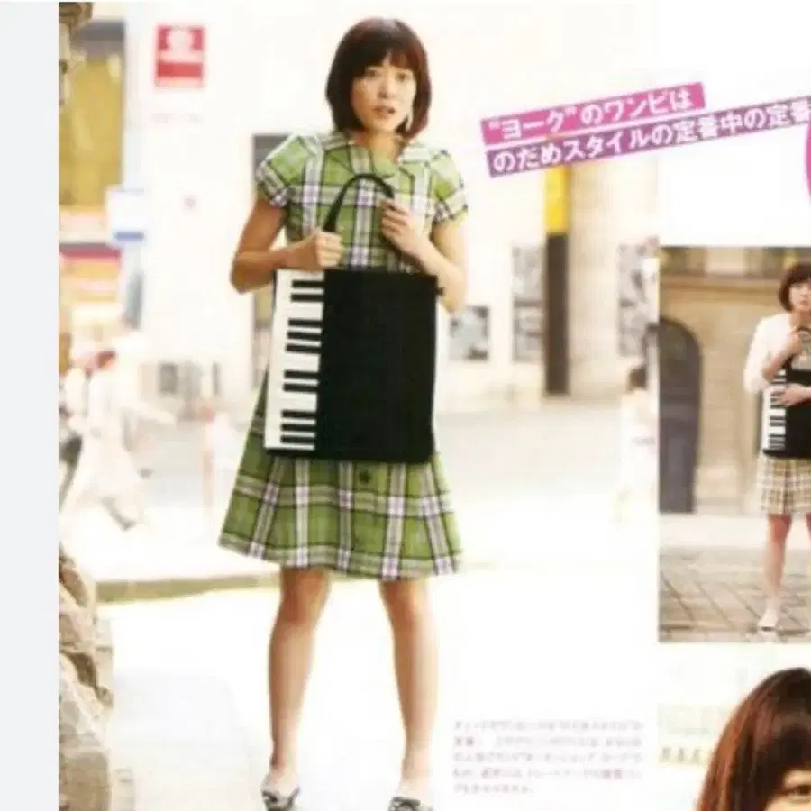 요크랜드 그린과 보라색 체크 무늬 반팔 원피스 노다메