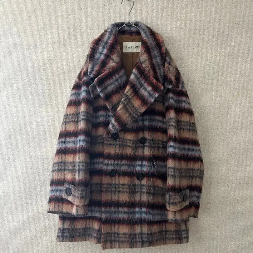 Ray BEAMS 체크 무늬 더블 브레스트 코트