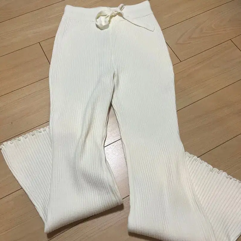 미사용 새상품 Trish 리브 화이트 팬츠 허리 끈 포함