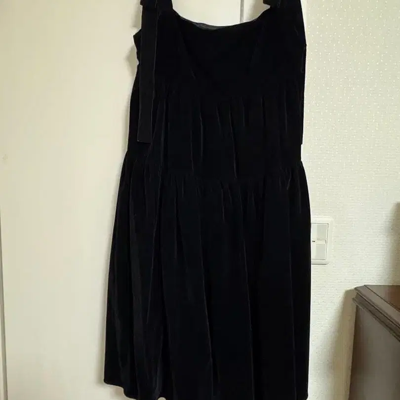 블랙 벨벳 숄더 리본 원피스