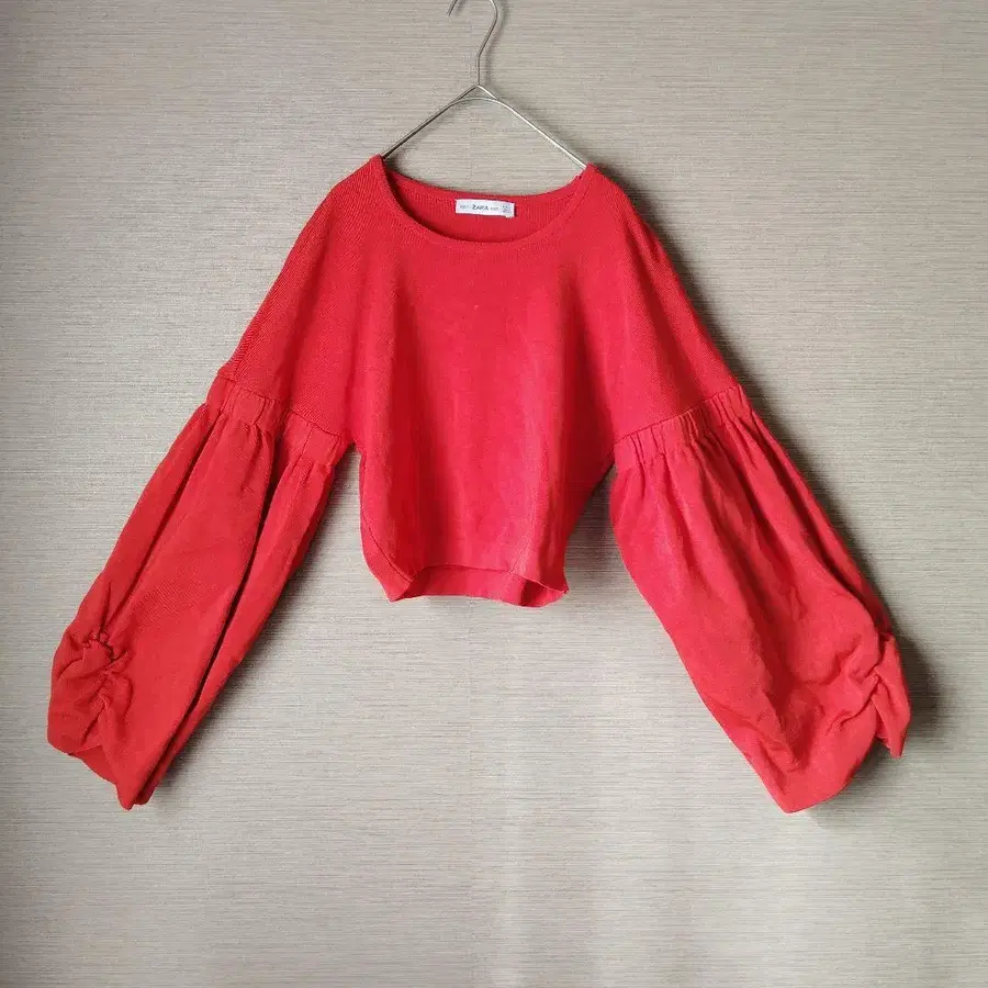 자라 레드 볼륨 슬리브 크롭 니트