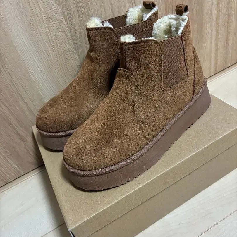 브라운 사이드 고어 스웨이드 어그 부츠 남성용 통굽