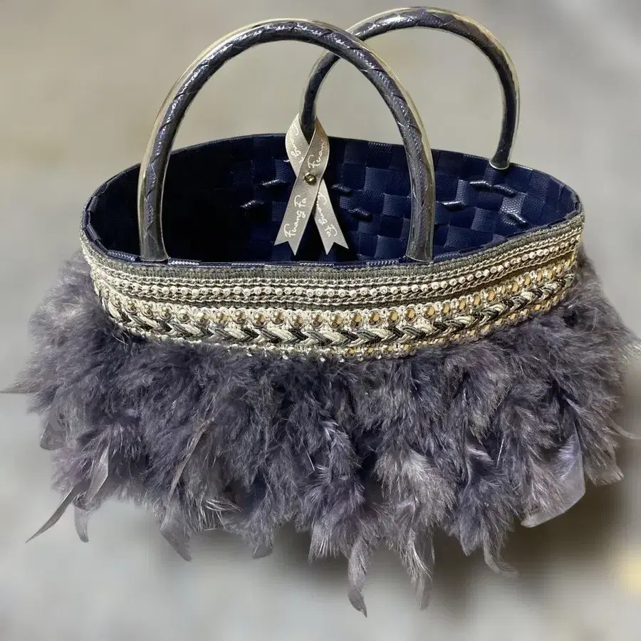 새상품급 fuang fa 퍼 포함 그레이 파랑 바스켓백 자수