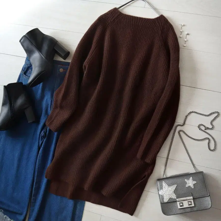 초콜릿 다크 브라운 나노 유니버스 보틀 보트넥 립 튜닉 니트