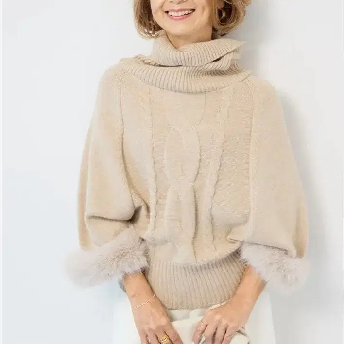 플러스오토하 plusOTO 퍼 후드 스웨터 베이지