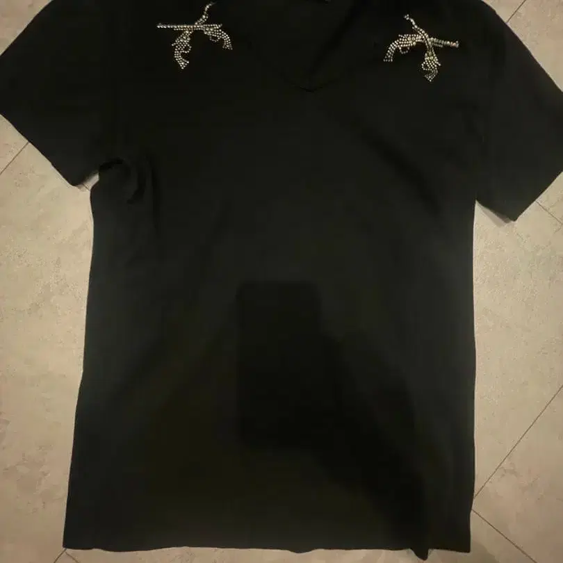 비즈 장식 V넥 블랙 T셔츠 vkei swag y2k archive