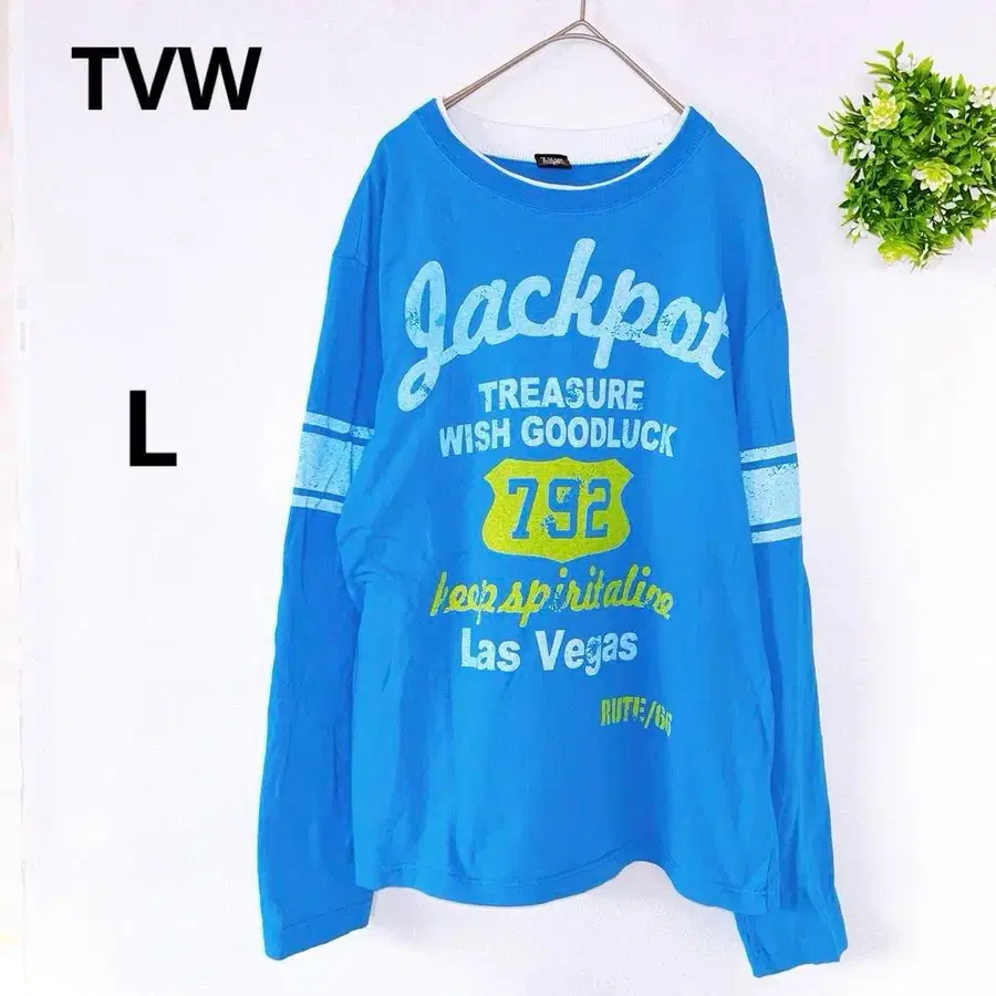 TVW 티셔츠 긴팔 티셔츠 롱티 로고 프린트 블루 스카이블루 L