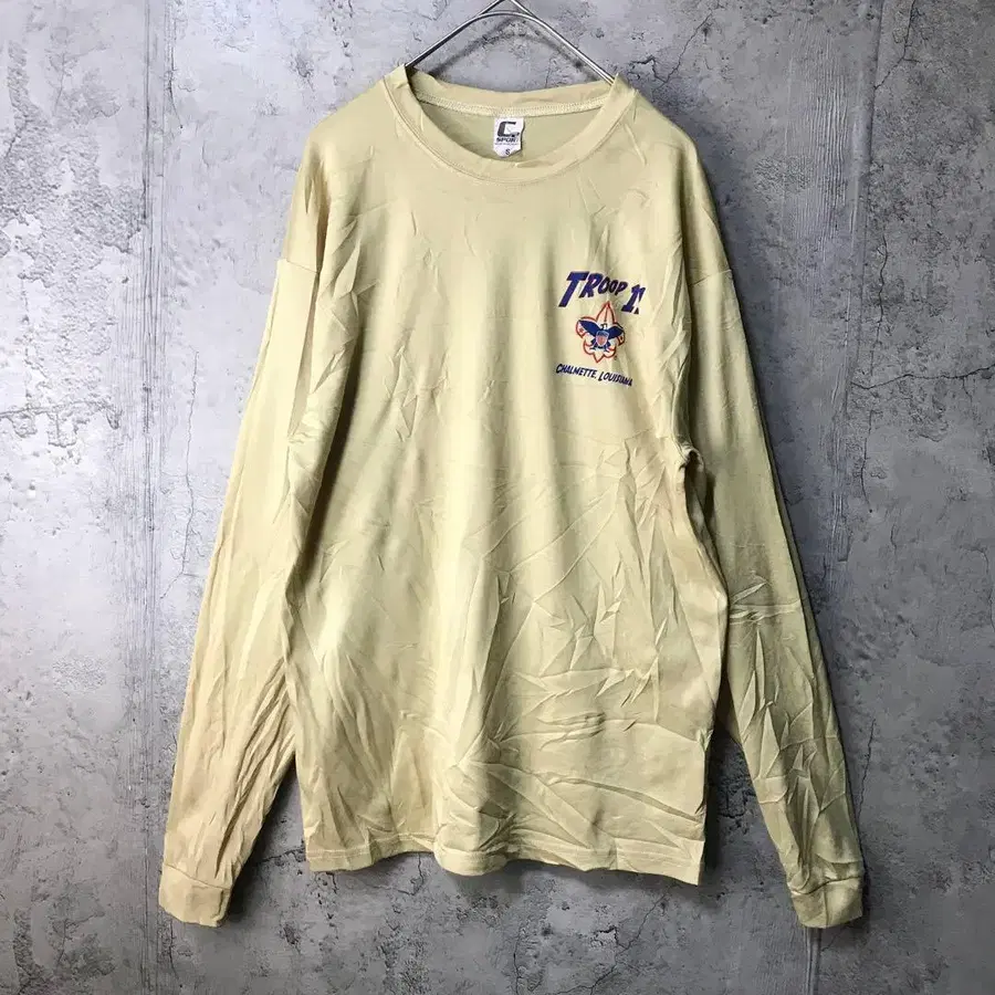 B1440 구제 의류 롱 T 백 프린트 머스타드 90s Y2K
