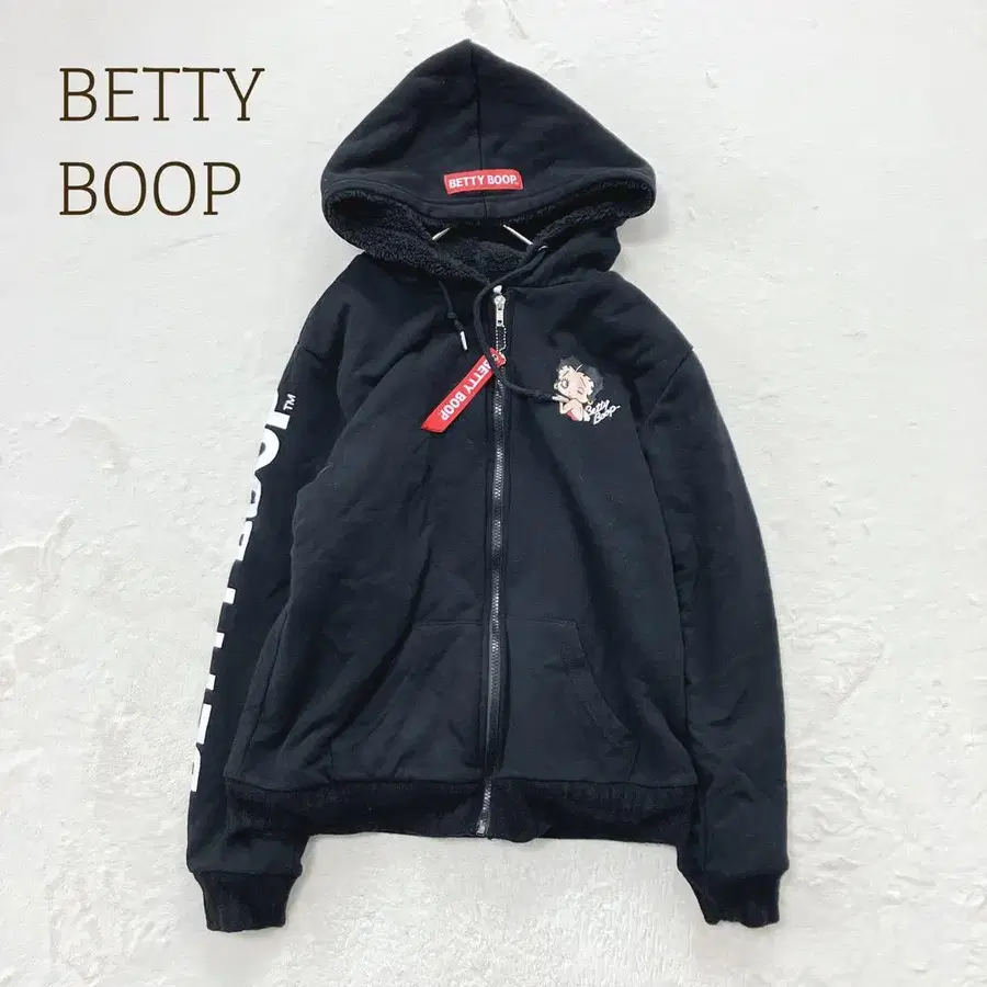 베티 붑 지퍼 후드티 보아 속기모 방한 (M) 후드 부착 캐릭터 블랙