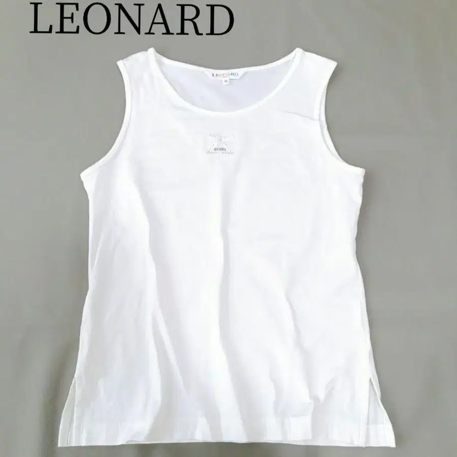 [LEONARD/레오나르] 슬리브리스 셔츠 로고 화이트 탱크탑