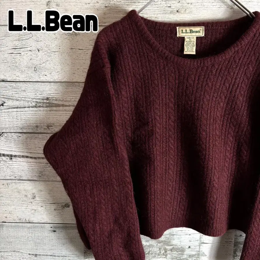 90s 엘엘빈 야크 혼방 울 니트 짧은 기장 딥 보르도 여성용 XL