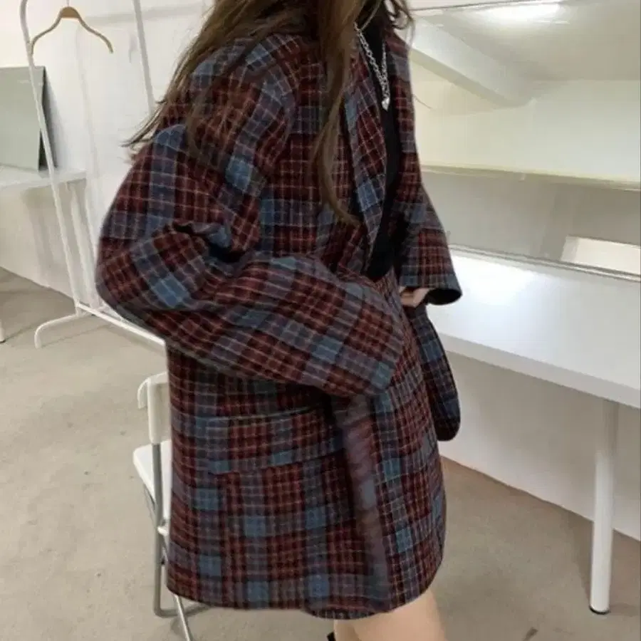 체크 무늬 테일러드 자켓 + 미니 스커트