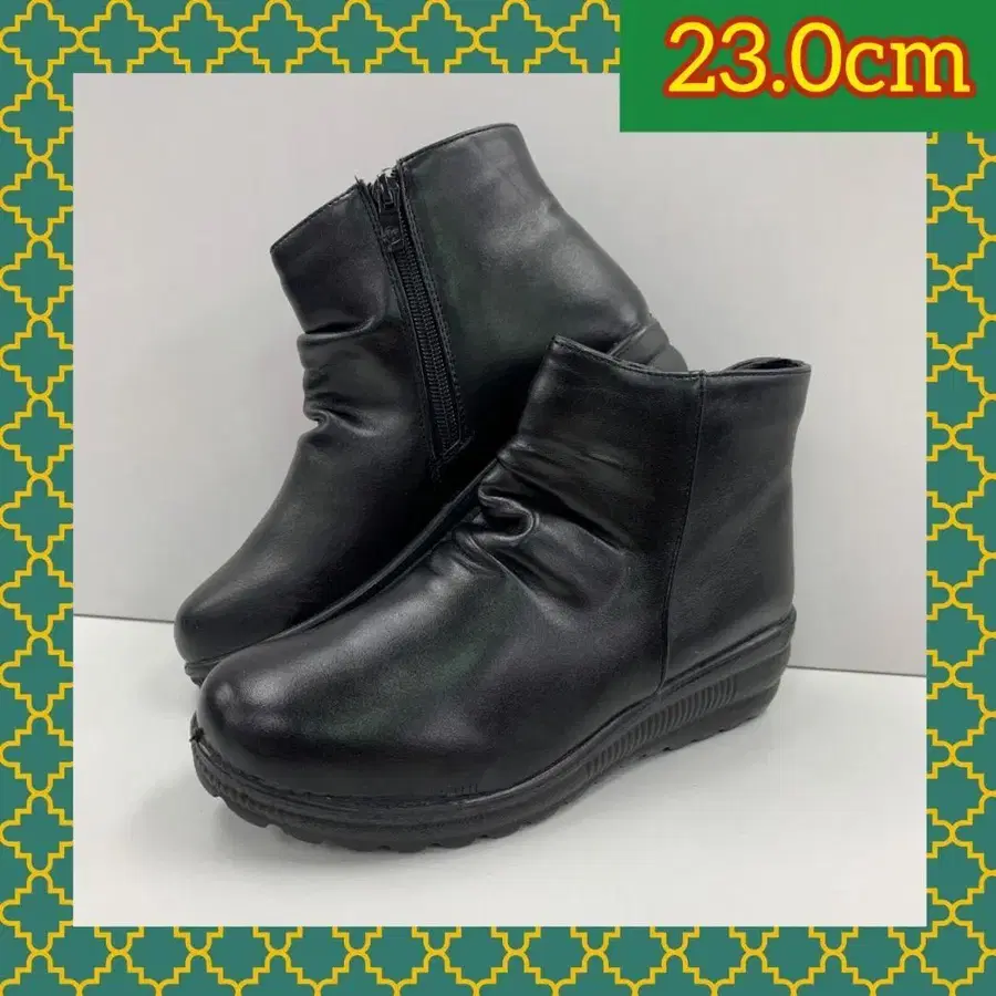 23.0cm 새상품 여성용 셔링 주름 가공 와이드 슬림 레그 부츠 블랙