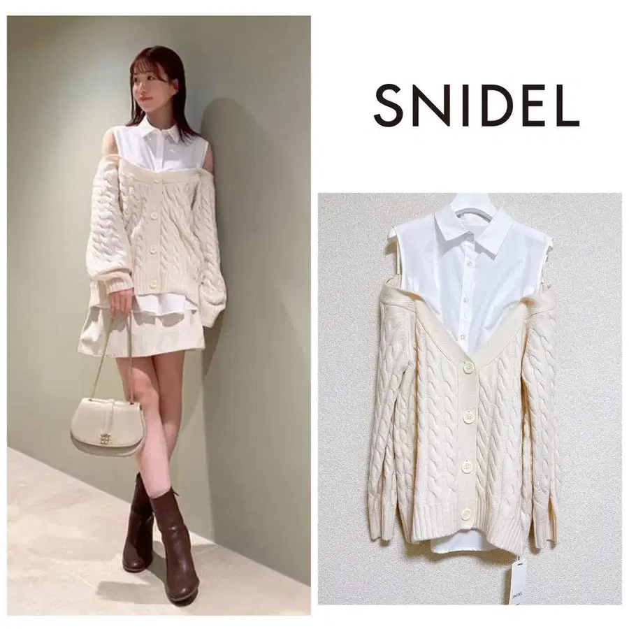 미사용 snidel 오프숄더 니트 레이어드 셔츠 화이트