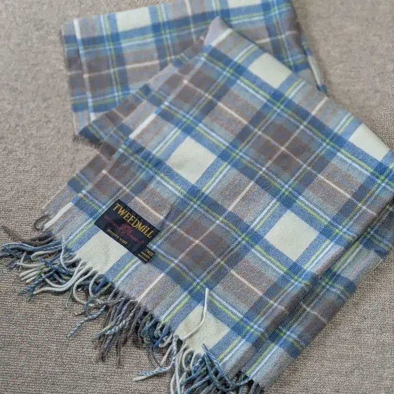 트위드밀 TWEEDMILL 체크 무늬 울 머플러 대형 스톨 새상품급